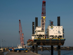Die Arbeiten erfolgen von einer 72 Meter langen Spezialplattform aus (siehe Foto), die in bis zu 38 Metern Wassertiefe einsetzbar ist. Die Plattform verfügt über einen Kran, der Rotor und Gondel auf über 80 Meter Höhe zur Endmontage hochzieht. Eine zweite Konstruktionsplattform wird Mitte des Jahres hinzukommen, um den Aufbau der Windturbinen mit voranzutreiben. Bereits im vergangenen Jahr wurden die Fundamente in rund 15 Meter Wassertiefe gesetzt. Parallel zu diesen Arbeiten wird Ende April ein weiteres Spezialschiff mit der Verkabelung der Windenergieanlagen beginnen. Das unter dem Meeresboden verlegte Kabelnetz verbindet die einzelnen Turbinen untereinander und leitet den erzeugten Strom in drei Hauptkabel, die zur Umspannstation an Land führen. Sowohl die Trafostation als auch die Hauptkabel wurden bereits in 2008 fertig gestellt. Nach jetzigem Planungsstand werden die ersten Windenergieanlagen von Rhyl Flats noch in diesem Sommer Strom erzeugen. Nach Fertigstellung kann der Windpark mit einer installierten Leistung von 90 Megawatt umgerechnet rund 61.000 Haushalte pro Jahr in Großbritannien mit Strom versorgen und jährlich mehrere zehntausend Tonnen CO2 einsparen.