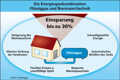 Moderne Brennwert-Heizkessel für Flüssiggas sind eine Möglichkeit, eine hohe Brennstoff-Nutzung zu erzielen und Energiekosten zu sparen. Eine Investition in die Brennwert-Technologie auf Flüssiggas-Basis entfaltet schon nach kurzer Zeit eine große Wirkung: Im Vergleich zum herkömmlichen Ölbetrieb können die Heizkosten nach Angaben des Unternehmens Rheingas um bis zu 30 Prozent gesenkt werden.