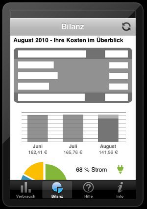 Am Monatsende fasst die Greenpocket-App alle Verbräuche sowie die Kosten zusammen. Abweichungen sind jetzt klar erkennbar. Diese App ist - sofern sie denn nach der Testphase mit den sieben Energieanbietern für einen weiteren Kundenkreis einzusetzen ist - sicherlich eine der besseren auf dem Markt.